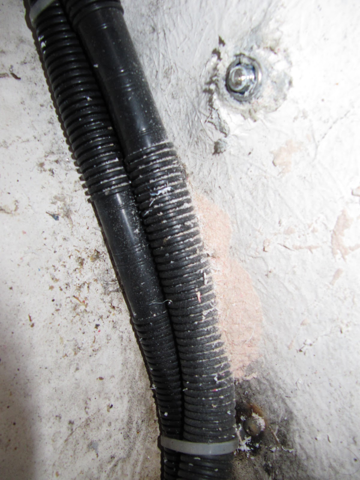 Motorrummet er indsmurt i Sikaflex her på hydraulik slanger.
