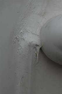 Lidt billeder af træpladen omkring ovenlysvinduet. Alt træværk var råddent og fyldt med vand, som løb ud hvis man trykkede på pladen.