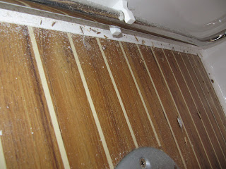 Her er det i kahytten med glasfiber slibestøv over alle puder m.m.