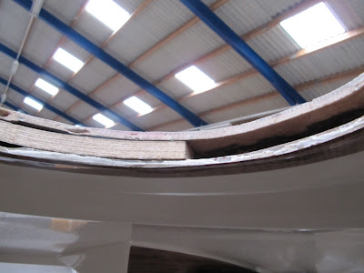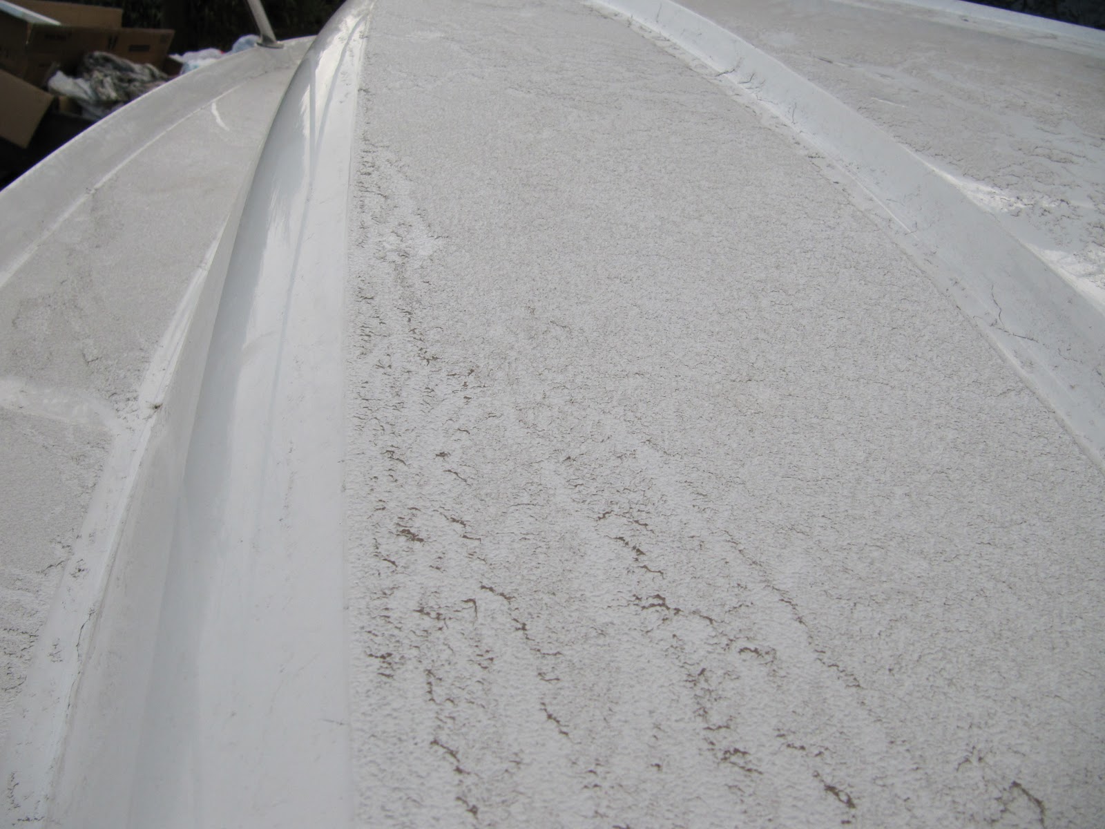 Båden er belagt med slibestøv over alt inde i kahytten, efter der er blevet slebet i glasfiberen så ovenlysvinduet kunne monteres.